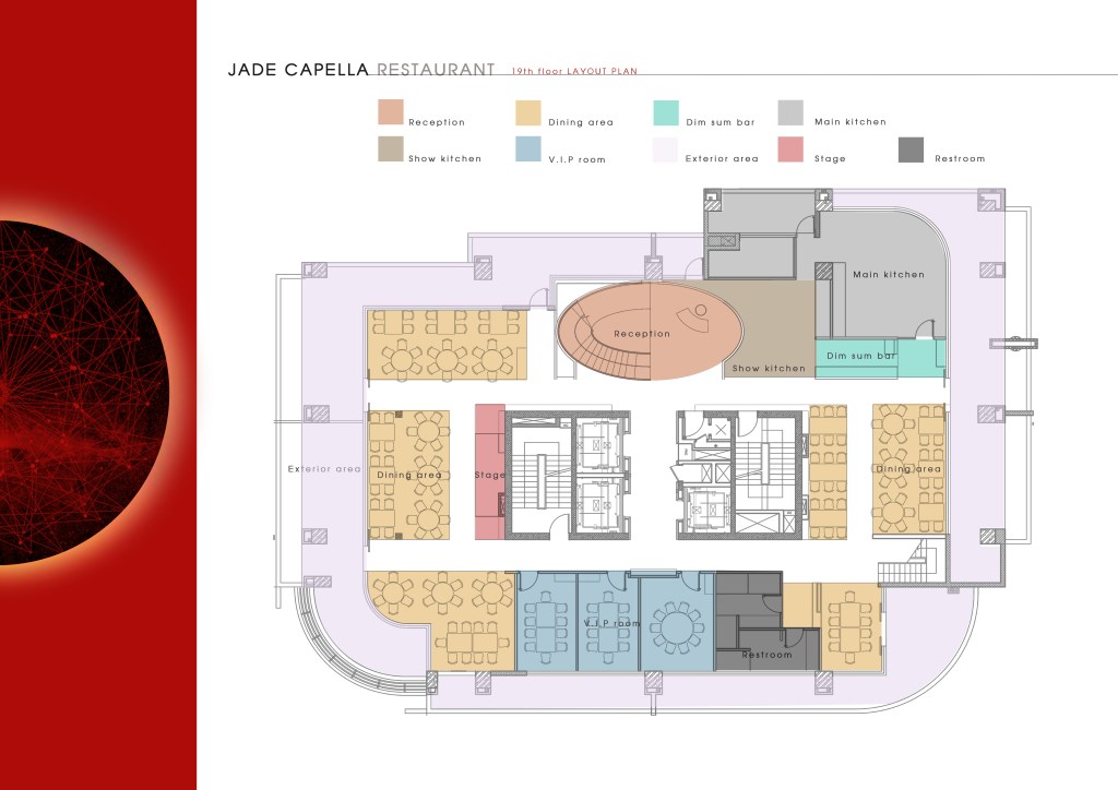 Yêu cầu: Đưa ra 1 concept kết nối được 2 nhà hàng tiêu chuẩn 5 sao: nhà hàng Trung Hoa Jade Capella (tầng 19) và nhà hàng Nhật Bản Azuma (tầng 20)