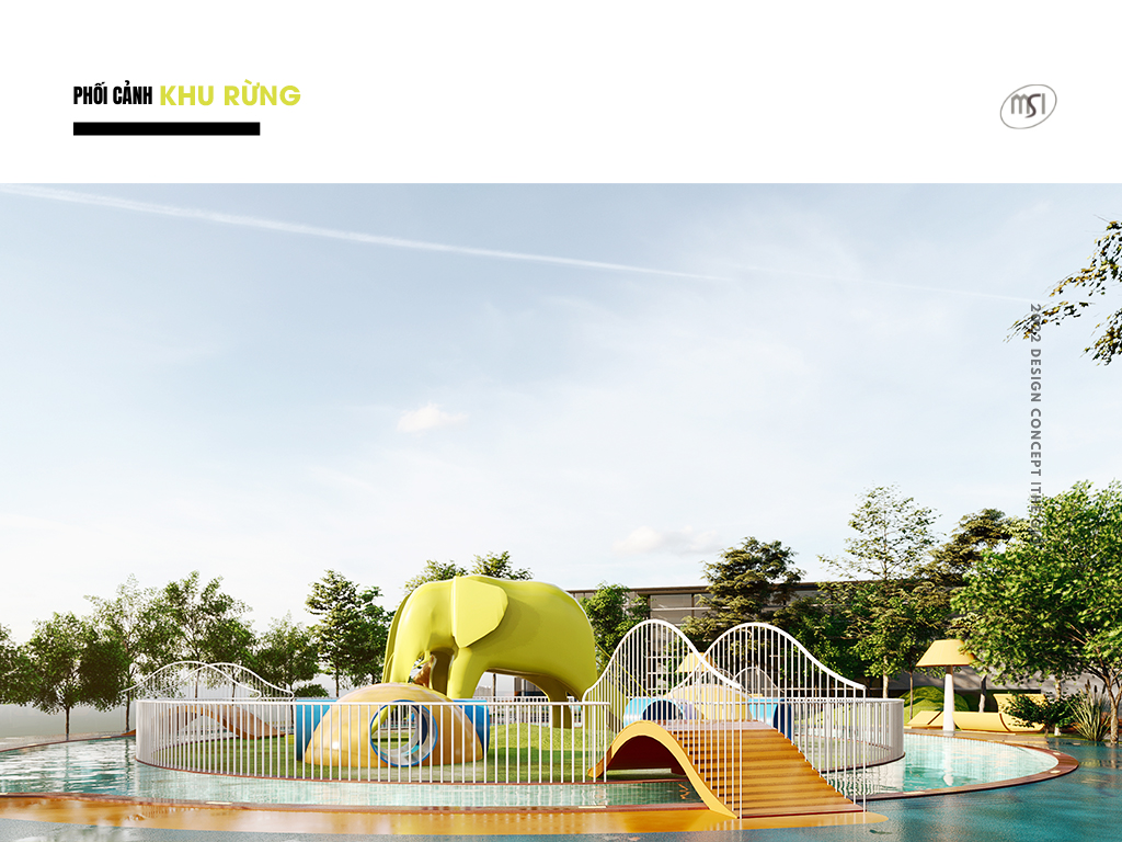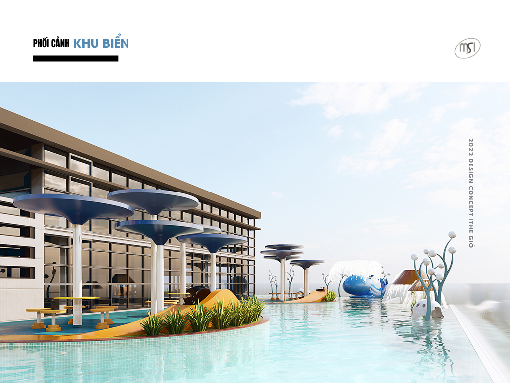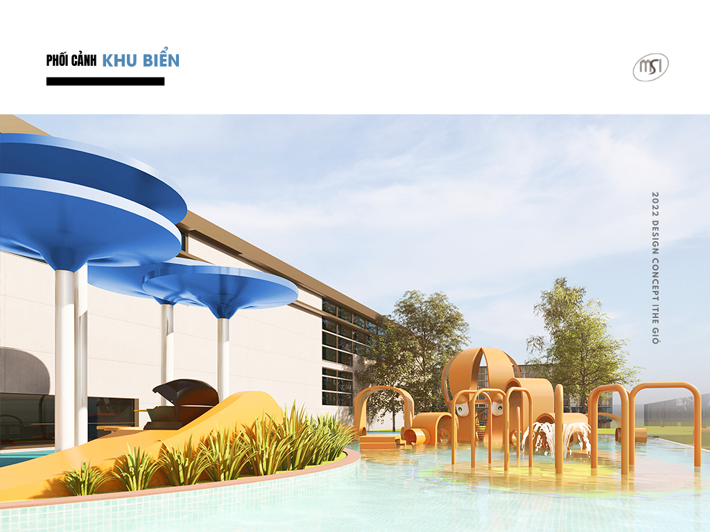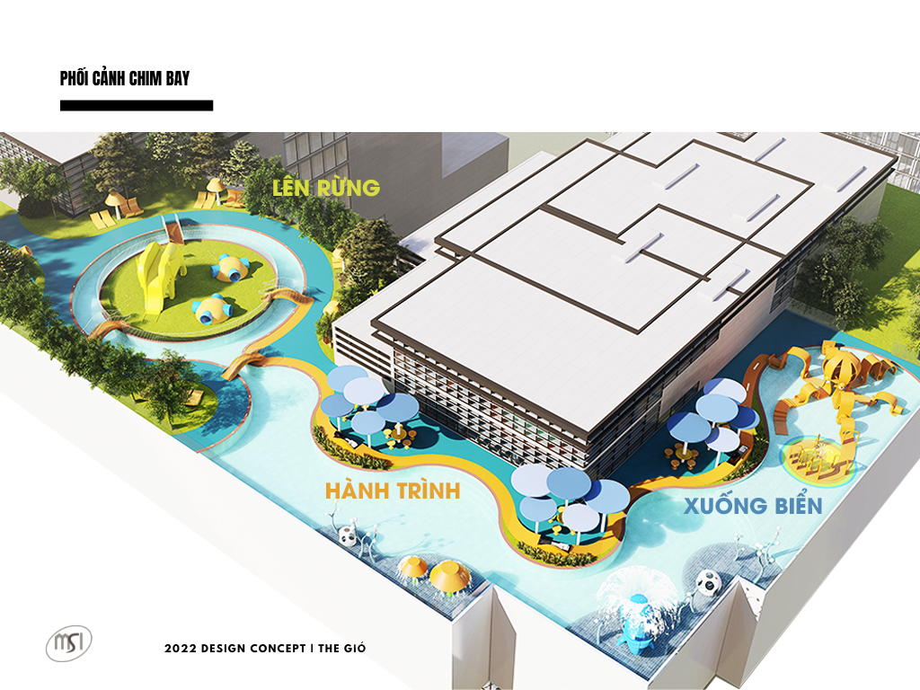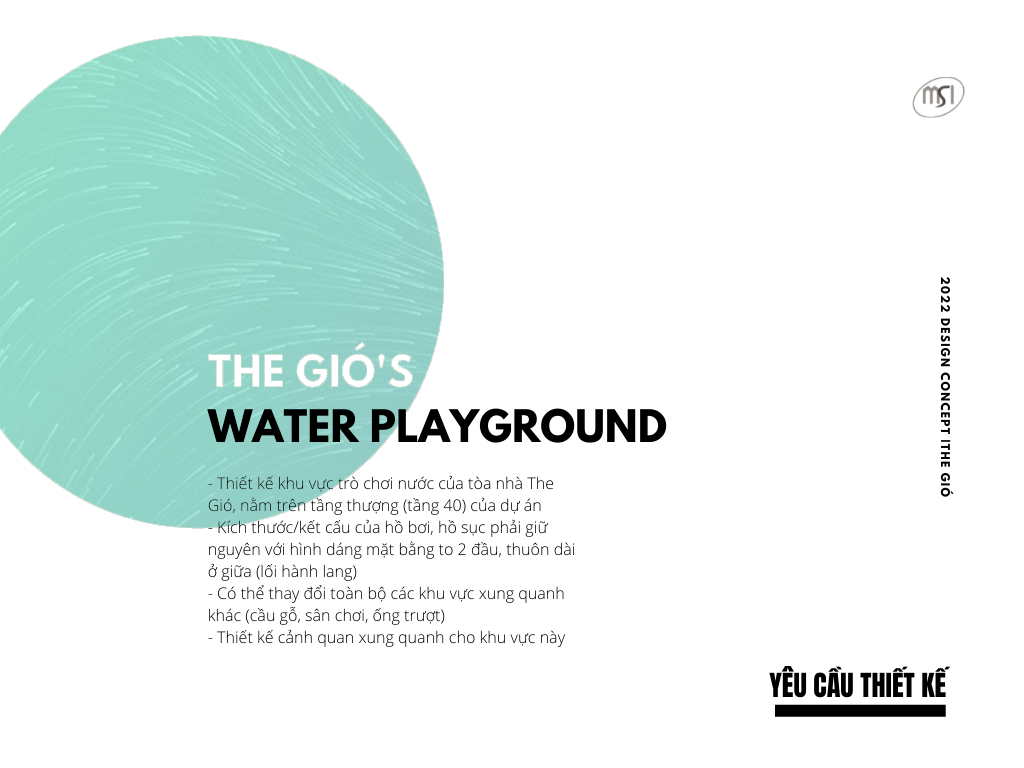 Yêu cầu: Thiết kế ý tưởng cảnh quan Khu vực trò chơi nước cho trẻ em nằm ở tầng thượng (tầng 40) trong chung cư The Gió;